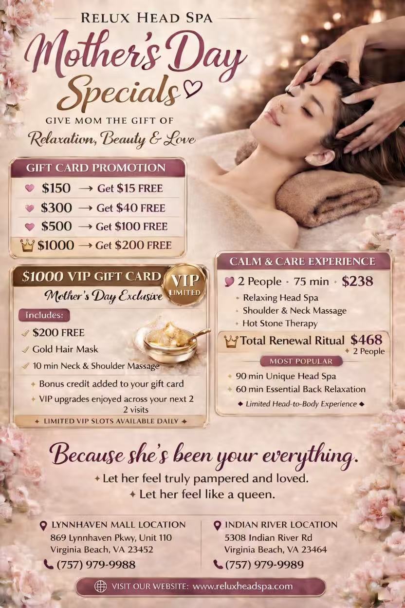 Yes. Relux Head Spa gift cards can be used at both of our locations.